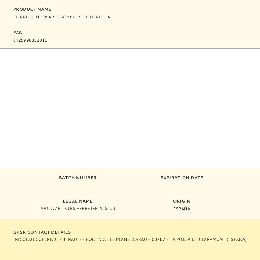 CIERRE CONDENABLE 50 x 60 INOX DERECHA