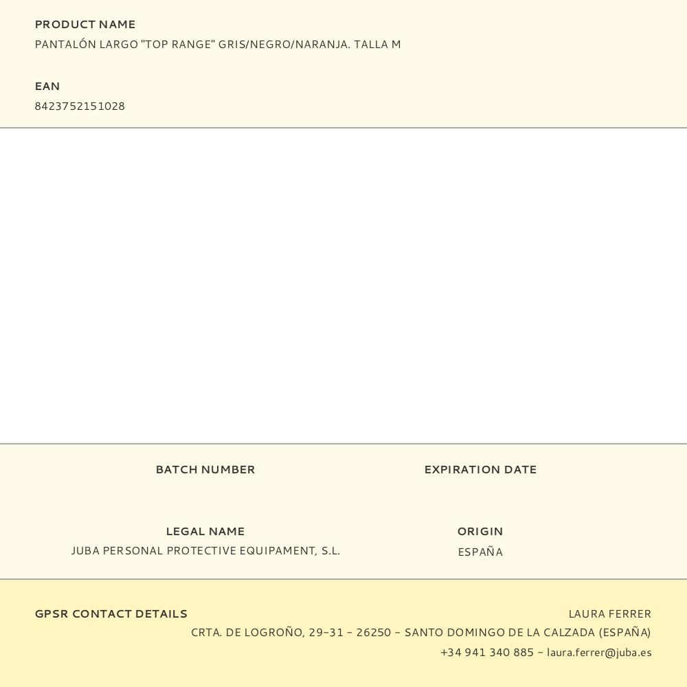 PANTALÓN LARGO "TOP RANGE" GRIS/NEGRO/NARANJA. TALLA M
