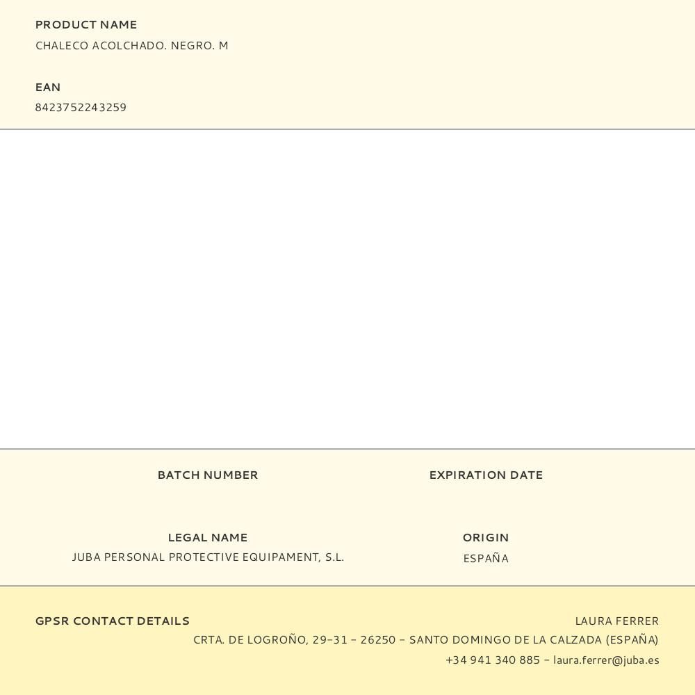 CHALECO ACOLCHADO. NEGRO. M