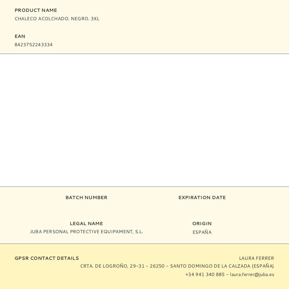 CHALECO ACOLCHADO. NEGRO. 3XL