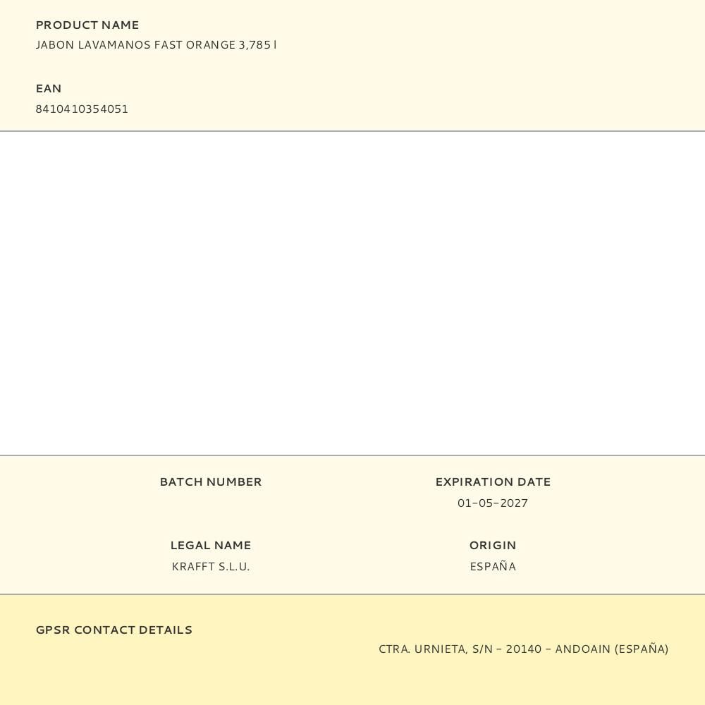 JABÓN MECÁNICO LAVAMANOS FAST ORANGE 3,785 l
