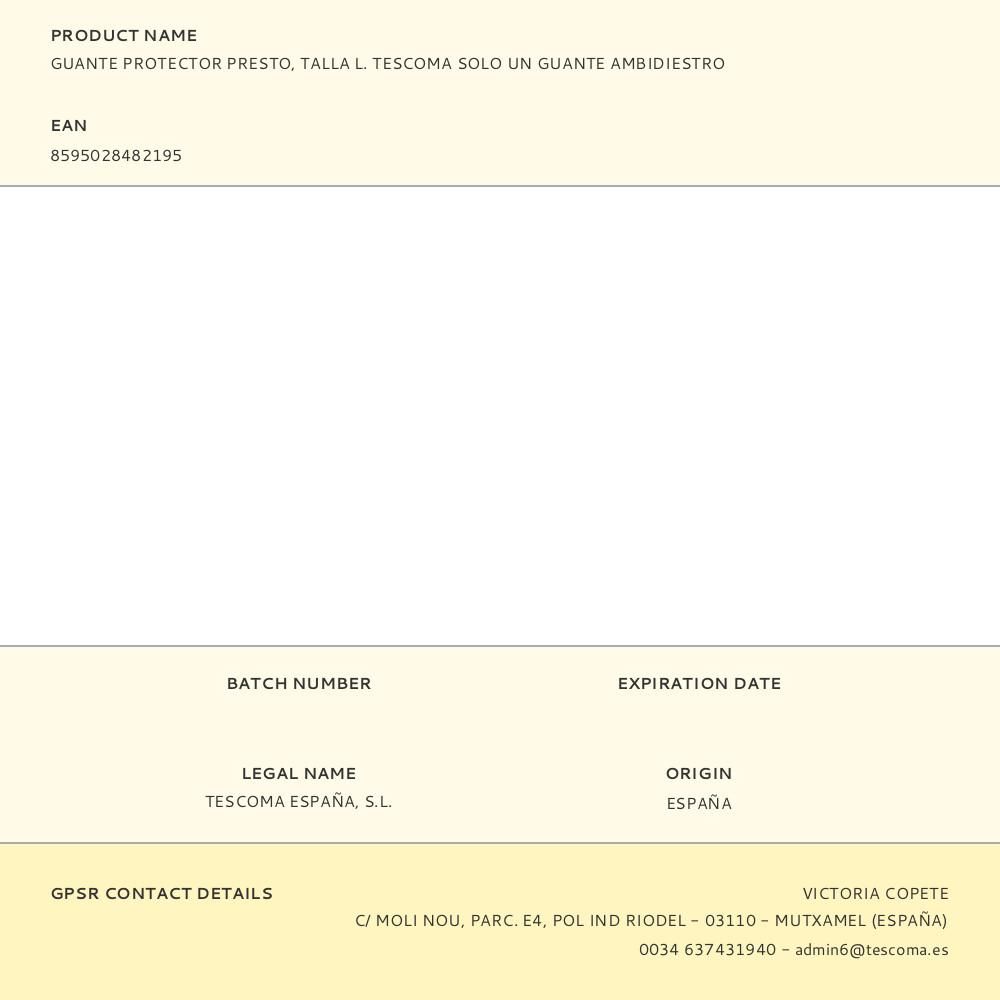 GUANTE PROTECTOR PRESTO, TALLA L, SOLO UN GUANTE AMBIDIESTRO