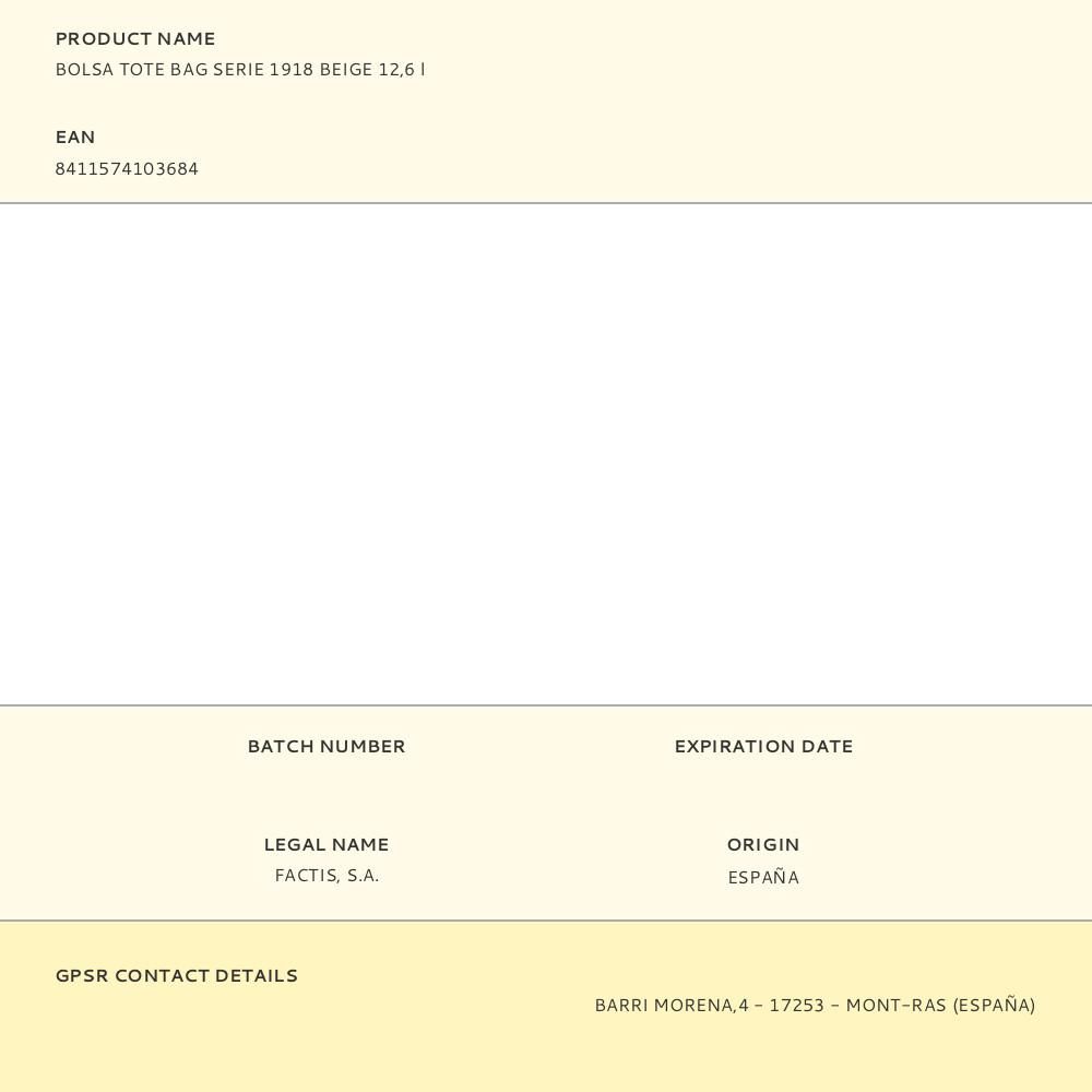 BOLSA TOTE BAG SERIE 1918 BEIGE 12,6 l