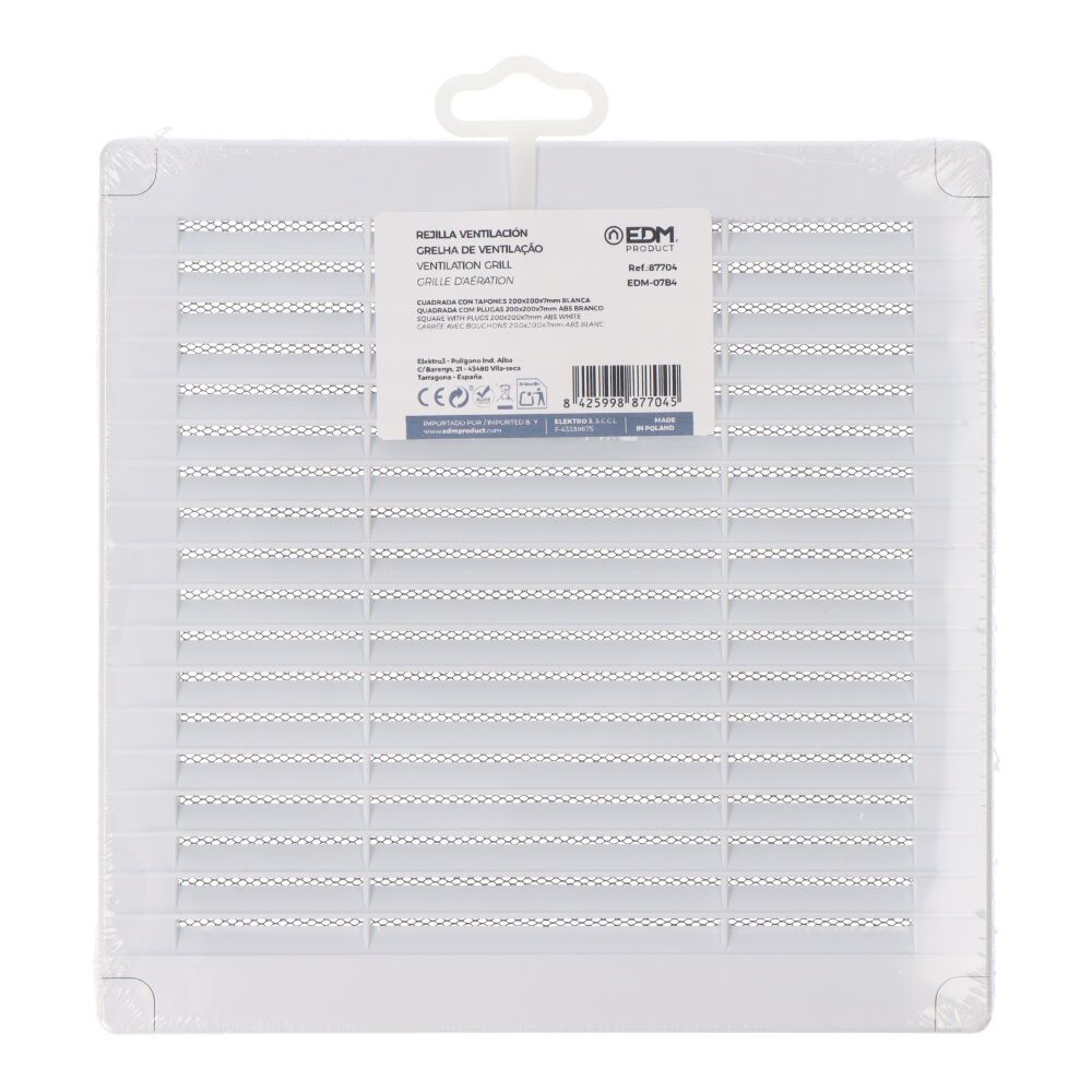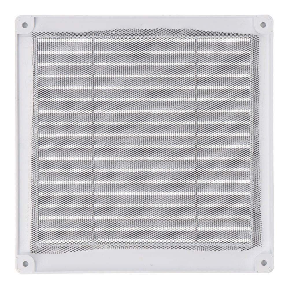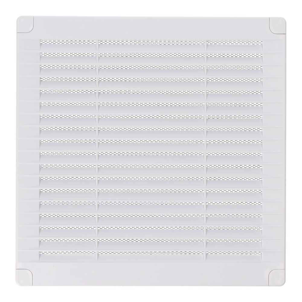 REJILLA VENTILACIÓN CUADRADA DE PLÁSTICO CON TAPONES Y MOSQUITERA. MEDIDA: 200x200x7mm. COLOR BLANCA