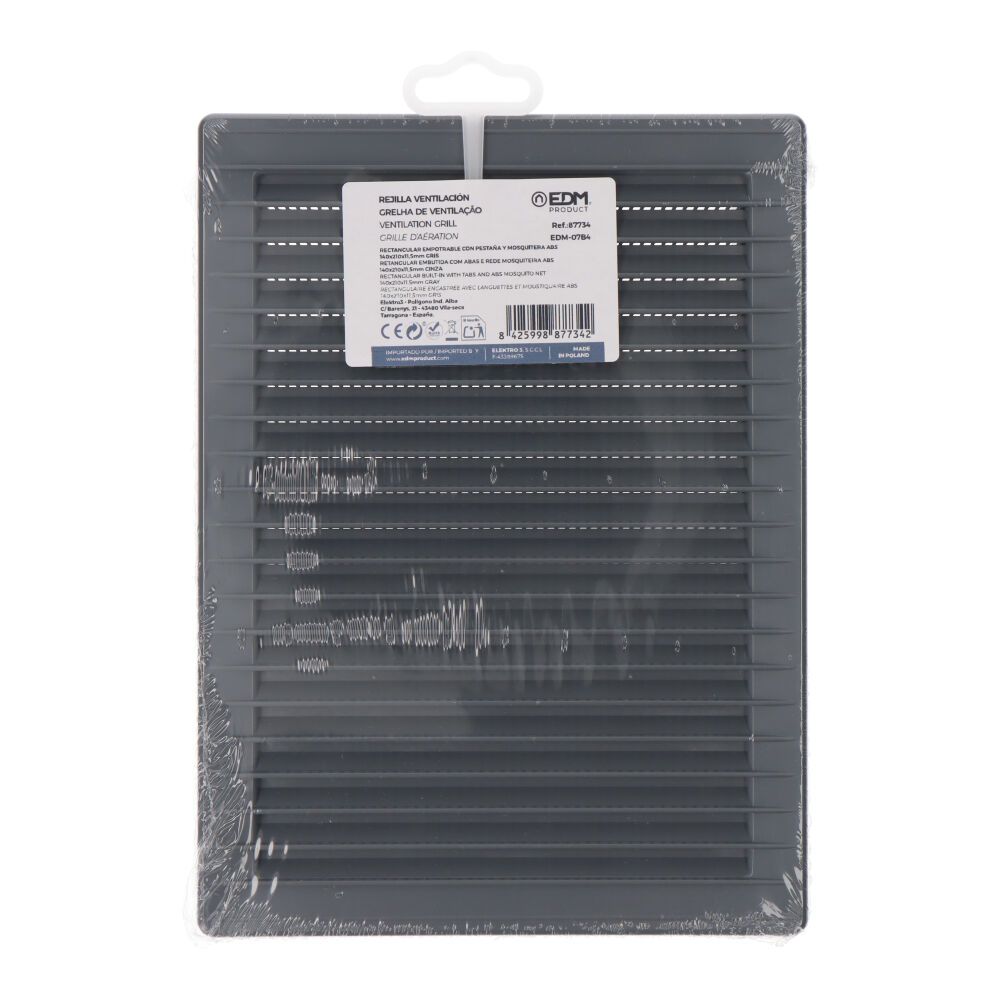 REJILLA VENTILACÍÓN RECTANGULAR EMPOTRABLE CON MOSQUITERA ABS 135x205mm GRIS