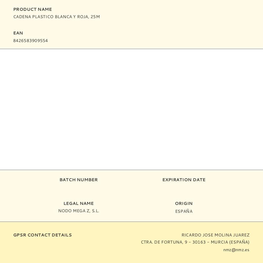 CADENA PLASTICO BLANCA Y ROJA, 25M
