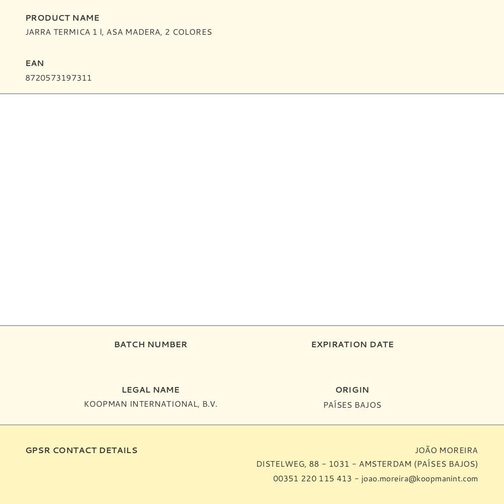 JARRA TÉRMICA CON ASA DE MADERA COLORES SURTIDOS 1 L
