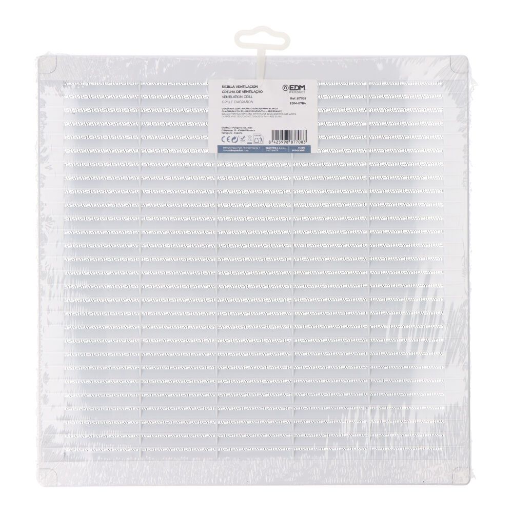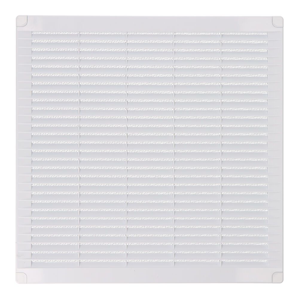 REJILLA VENTILACIÓN CUADRADA DE PLÁSTICO CON TAPONES Y MOSQUITERA, MEDIDA 300x300x7mm BLANCA