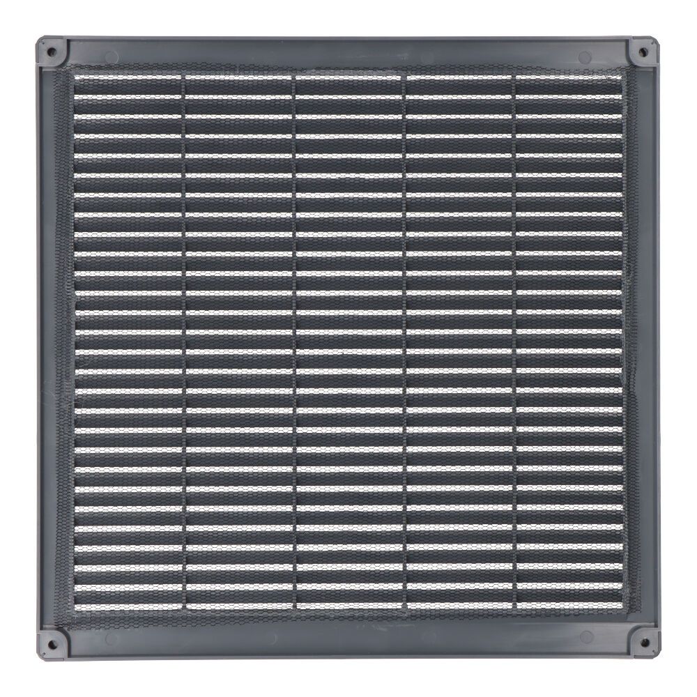 REJILLA VENTILACIÓN CUADRADA CON TAPONES Y MOSQUITERA 300x300x7mm ABS GRIS