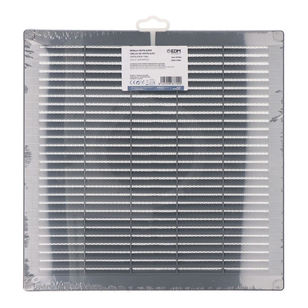 REJILLA VENTILACIÓN CUADRADA DE PLÁSTICO CON TAPONES Y MOSQUITERA 300x300x7mm GRIS