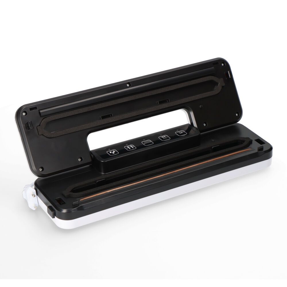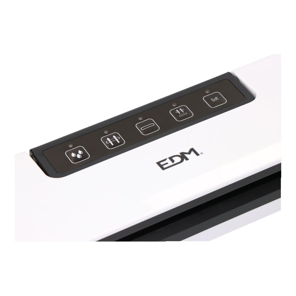 MÁQUINA DE VACIO 90W. POTENCIA DE VACIO 35-55Kpa, ANCHO DE SELLADO 28cm - INDICADOR LUMINOSO. CON 5 FUNCIONES: MODO HÚMEDO, PARA ALIMENTOS HUMEDOS - CONTENEDOR DE VACIO - SOLO SELLO - ASPIRAR Y SELLAR - Y BLANDOS, PARA ALIMENTOS SENSIBLES A LA PRESIÓN. CONTIENE 1 BOBINA DE BOLSAS Y TUBO DE ASPIRACIÓN. NO CONTIENE DEPÓSITO DE EVACUACIÓN. COMPATIBLE UNICAMENTE CON BOLSAS DE VACIO EDM (REF. 07587). COLOR BLANCO Y NEGRO. MEDIDAS 37,6x11x5,7cm. 220-240V ~ 50/60Hz