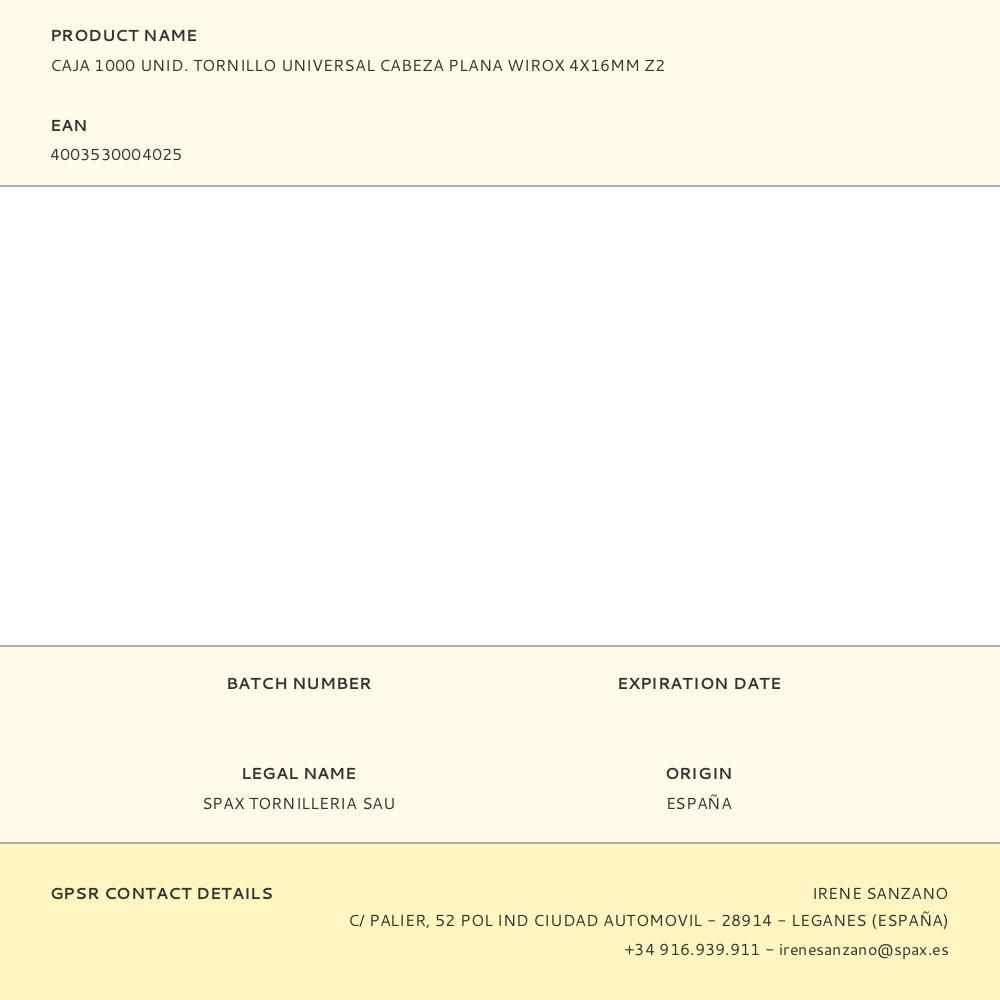 CAJA 1000 UNID. TORNILLO UNIVERSAL CABEZA PLANA WIROX 4X16MM Z2