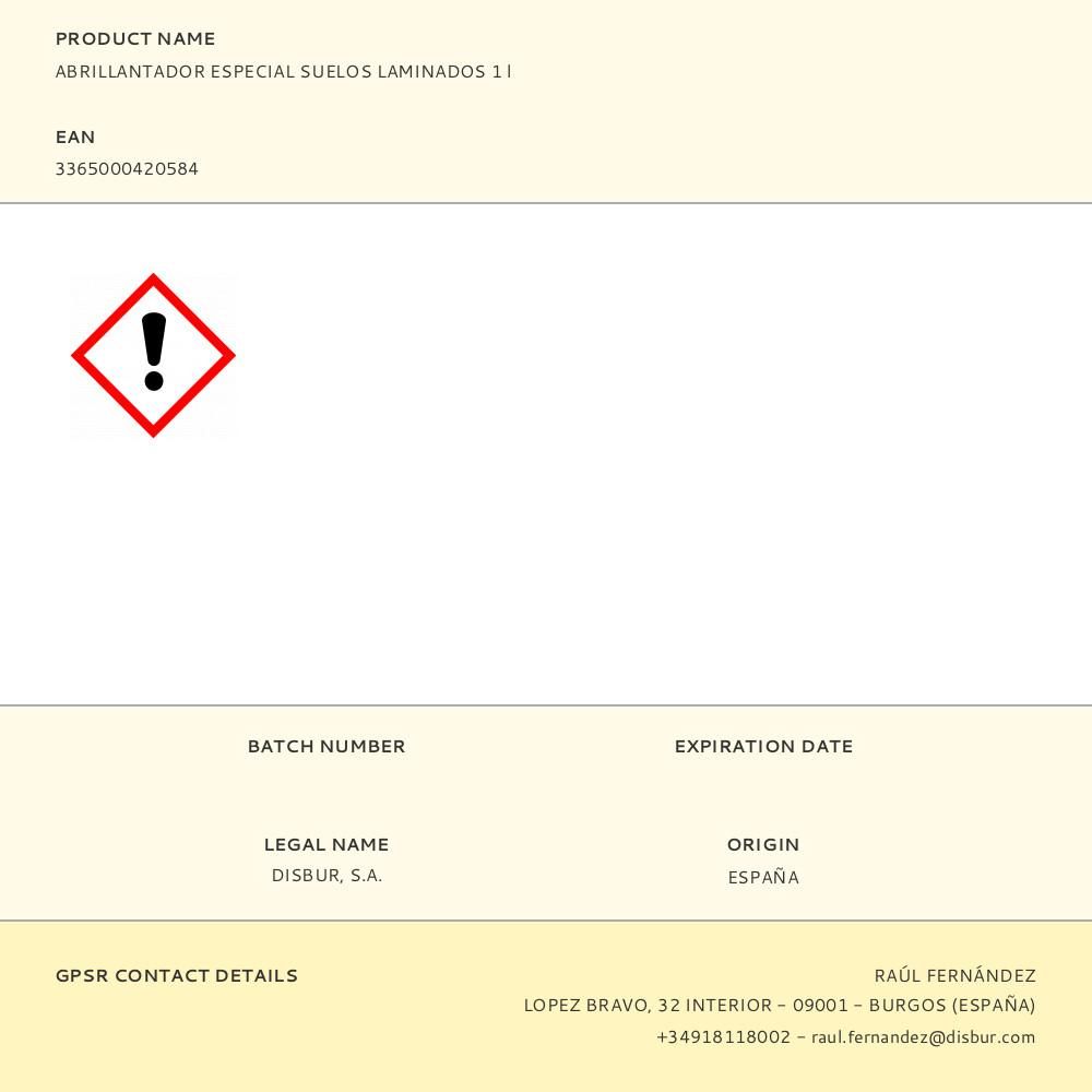 LIMPIADOR ABRILLANTADOR SUELOS LAMINADOS 1 L. DEVUELVE EL BRILLO, ELIMINA LOS ARAÑAZOS. CREANDO UNA PROTECCIÓN DE LARGA DURACIÓN. NO RESBALA. SIN ACLARADO.