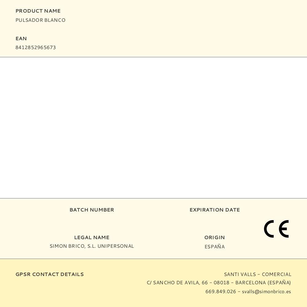 PULSADOR BLANCO SERIE 10. MATERIAL PLÁSTICO, IP20, 230V, 10A. MEDIDA 8,4x4,5x8,4 cm.ENCLAVAMIENTO 2,5cm. CON MARCO.