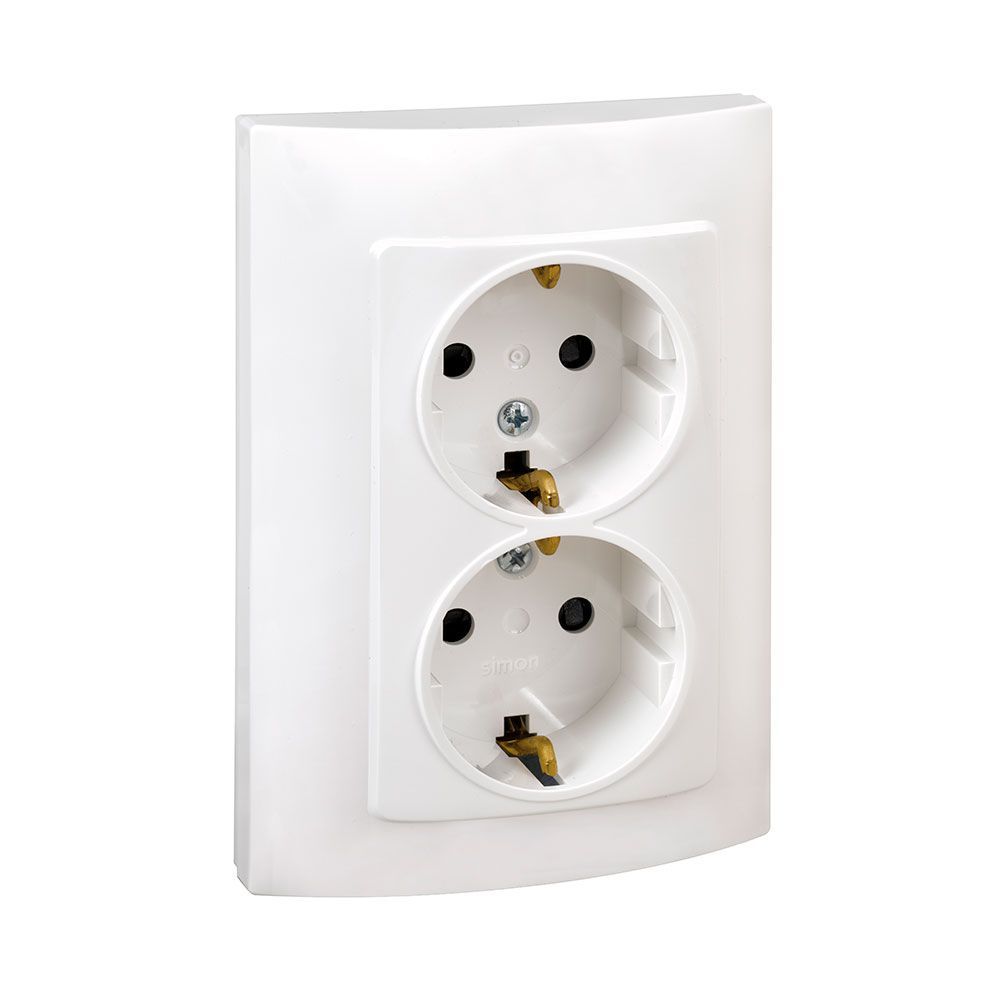 DOBLE BASE ENCHUFE CON TT BLANCO CON MARCO SERIE 10. MATERIAL PLÁSTICO, IP20, 230V, 16A. 2 POLOS Y TOMA TIERRA. MEDIDA 12x4x8,4 cm. MEDIDA DE ENCLAVAMIENTO 2,5cm