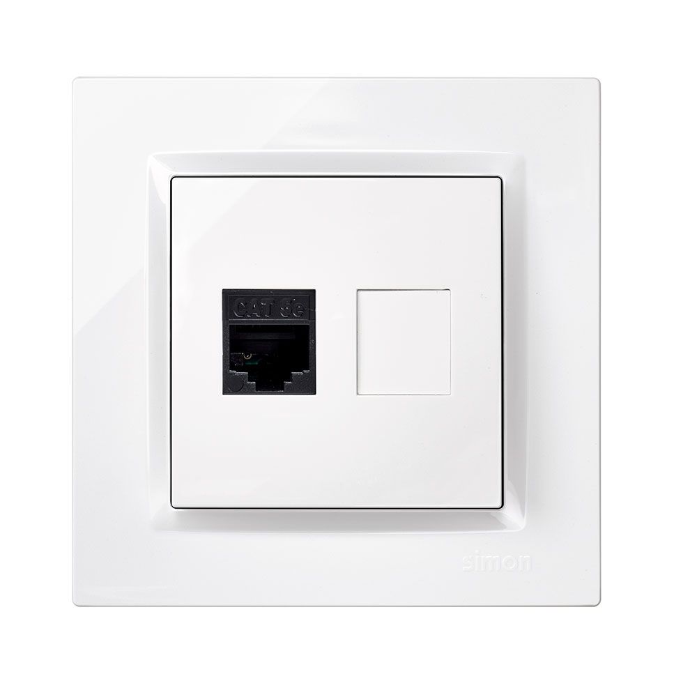 BASE RJ45 CAT.5E BLANCO SERIE 10. MATERIAL PLÁSTICO, IP20. MEDIDA 8,4x8,4 cm. ENCLAVAMIENTO 2.5 cm. CON MARCO.