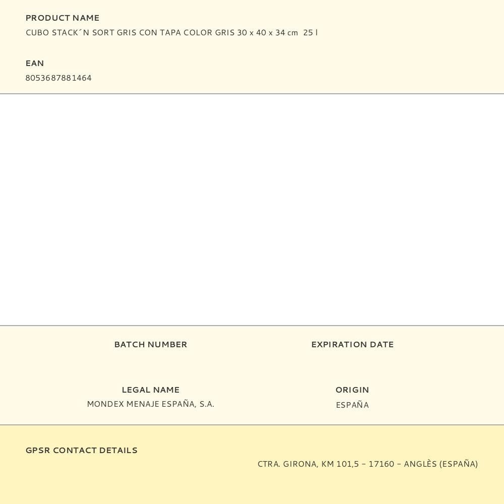 CUBO 25L STACK´N SORT, 30 x 40 x 34 cm GRIS CON TAPA COLOR GRIS, SISTEMA DE RECICLADO, APILABLES - MATERIAL 98% RECICLADO Y 100% RECICLABLE