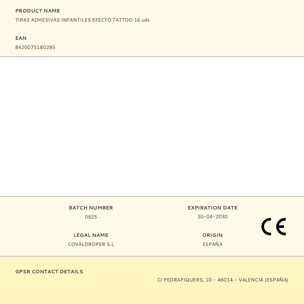 TIRAS ADHESIVAS INFANTILES EFECTO TATTOO 16 uds