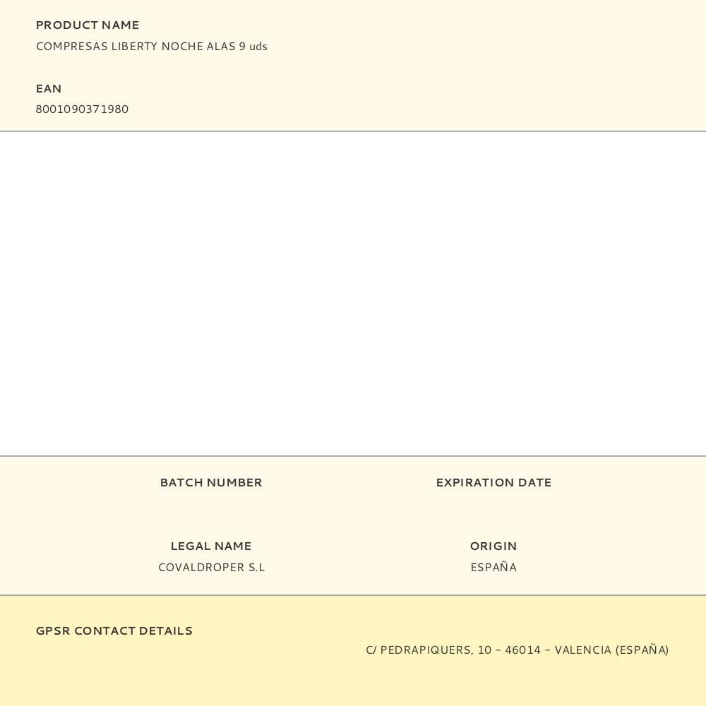 COMPRESAS LIBERTY NOCHE ALAS 9 uds