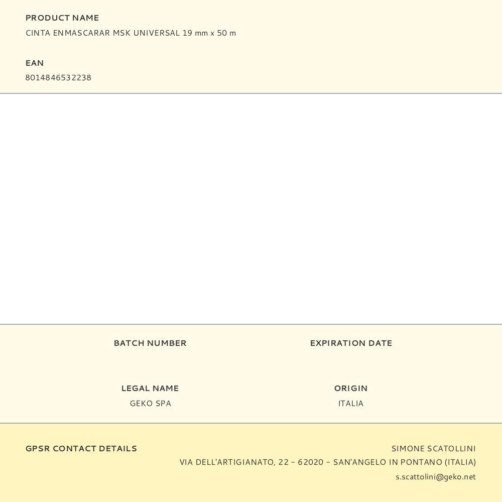 CINTA ENMASCARAR MSK UNIVERSAL 19 mm x 50 m. USO EN INTERIOR