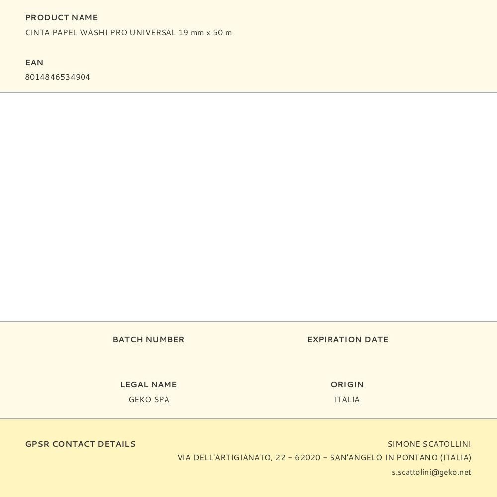 CINTA PAPEL WASHI PRO UNIVERSAL 19 mm x 50 m
