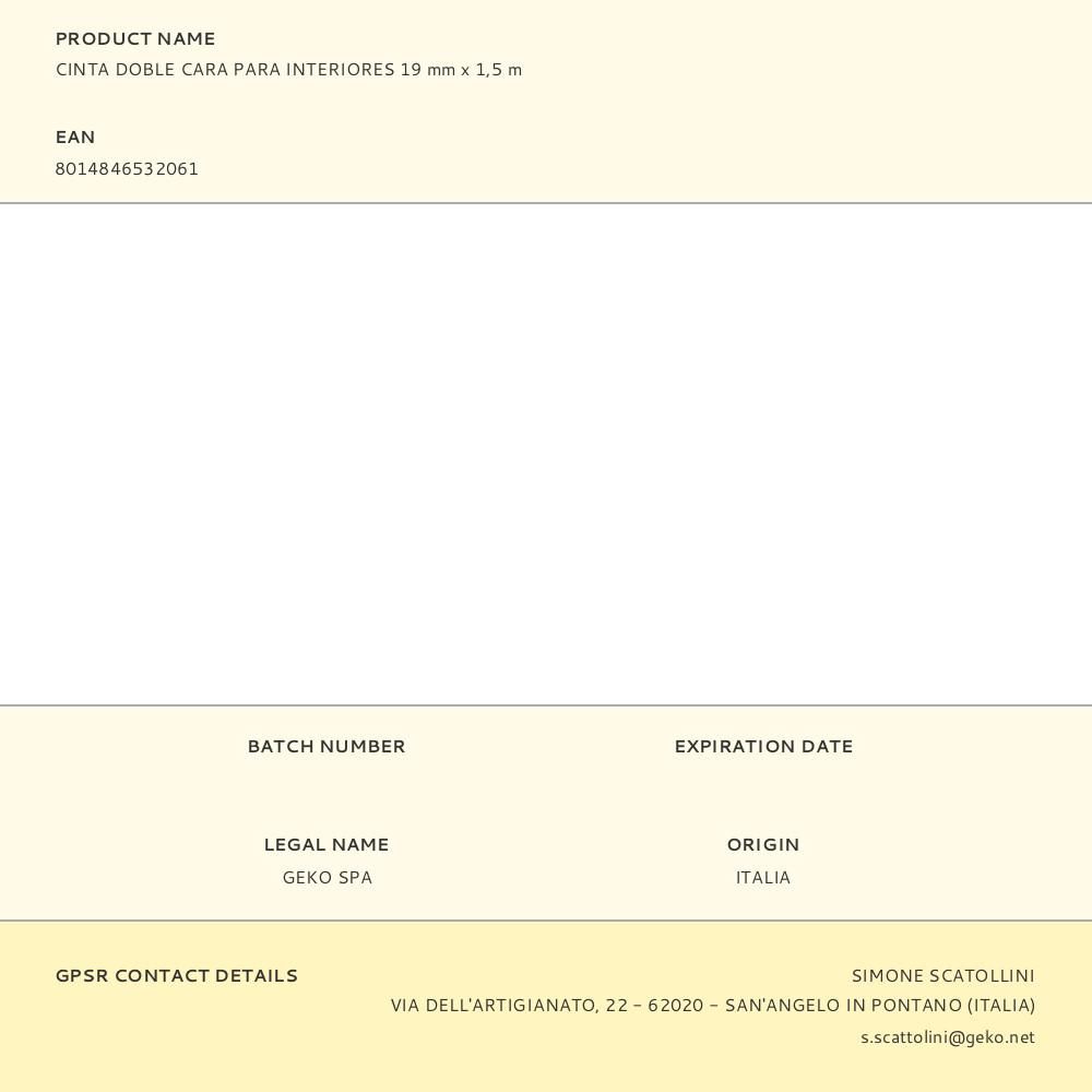 CINTA DOBLE CARA PARA INTERIORES 19 mm x 1,5 m