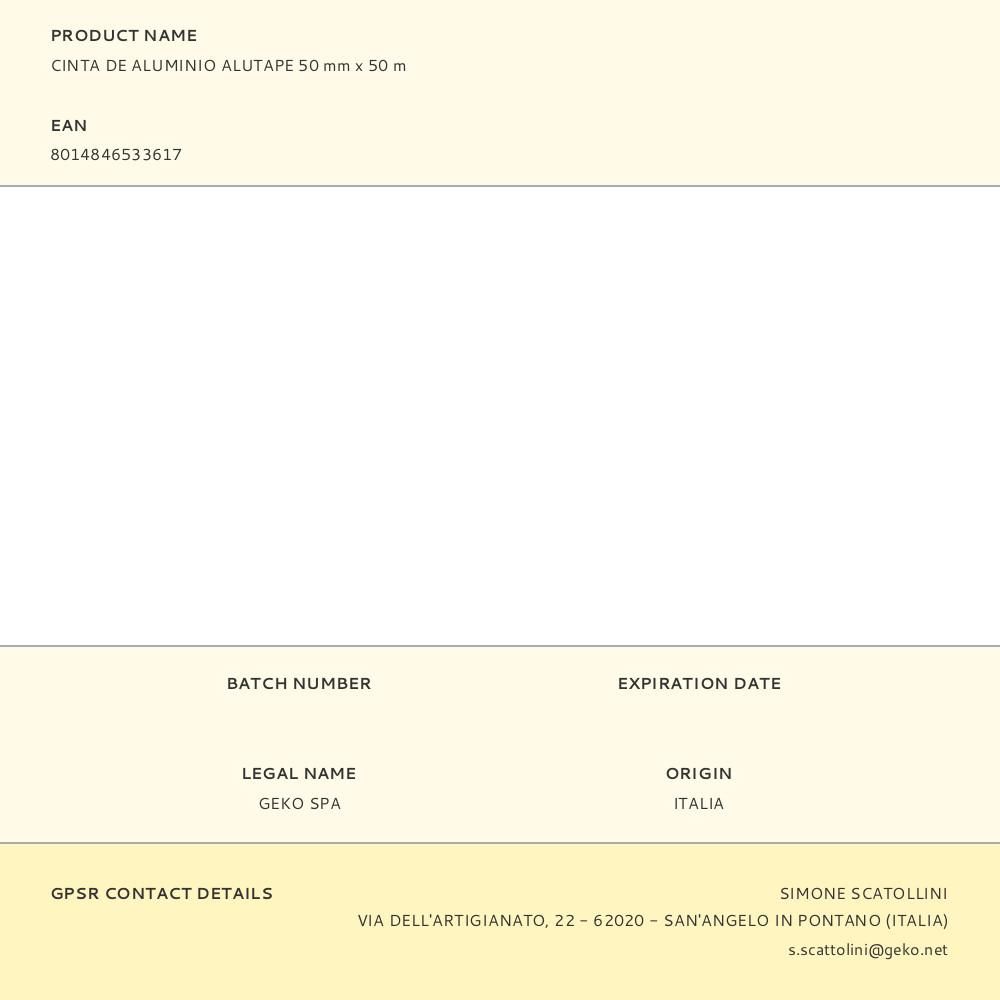 CINTA DE ALUMINIO ALUTAPE 30 MICRAS 50 mm x 50 m, ADHESIVO ACRILICO CON SOPORTE DE PAPEL. RESISTENTE A ALTAS TEMPERATURAS