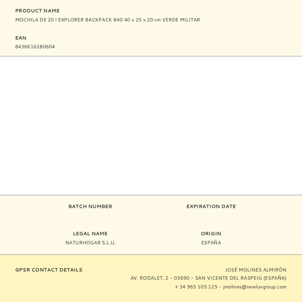 MOCHILA DE 20 l EXPLORER BACKPACK B40 40 x 25 x 20 cm VERDE MILITAR