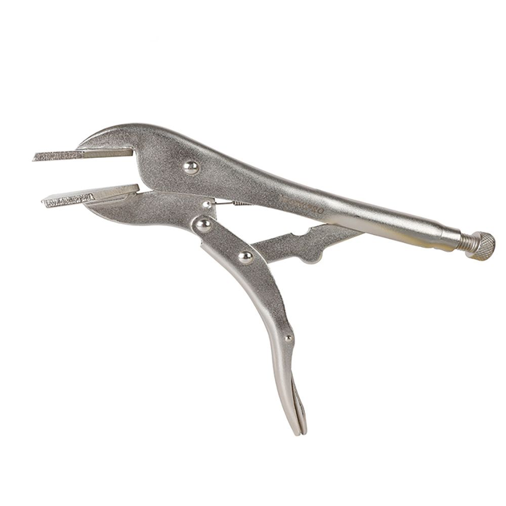 ALICATE DE PRESIÓN PARA LÁMINAS 250 mm / 10 pulg. ACERO CROMO MOLIBDENO PARA MÁXIMA DURABILIDAD. ACCIÓN DE BLOQUEO Y LIBERACIÓN RÁPIDA Y SENCILLA. LA LIBERACIÓN PROTEGIDA AYUDA A MANTENER EL TRABAJO RÁPIDO Y SEGURO. GIRE EL TORNILLO PARA AJUSTAR LA PRESIÓN DE SUJECIÓN
