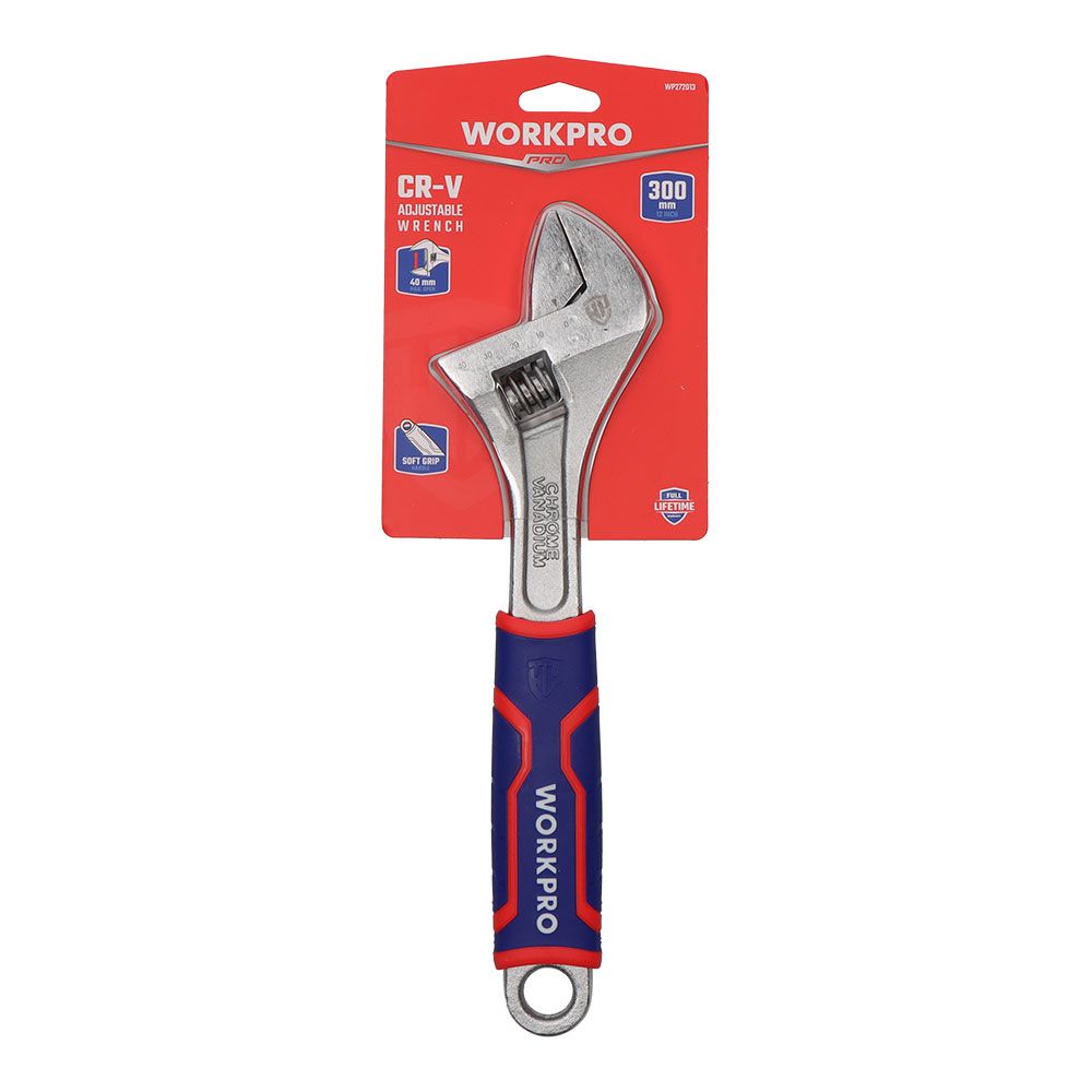 LLAVE AJUSTABLE 300 mm . CONSTRUCCIÓN DE ACERO AL CROMO VANADIO PARA MAYOR RESISTENCIA. CROMADO PARA RESISTENCIA AL ÓXIDO Y LA CORROSIÓN. MANGO DE AGARRE CÓMODO DE DOS MATERIALES 162 x 50 x 16 mm