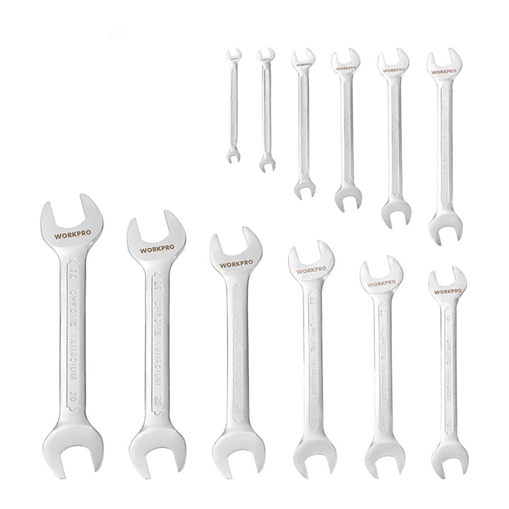 LLAVE FIJA, JUEGO 12 PIEZAS. ACERO AL CROMO-VANADIO, CROMADAS. TRATADAS TÉRMICAMENTE Y TEMPLADAS PARA CUMPLIR O SUPERAR LAS NORMAS ANSI EN CUANTO A RESISTENCIA Y DURACIÓN., ACABADO MATE. TAMAÑO: 6 - 7 mm, 8 - 9 mm,10 - 11 mm, 12 - 13 mm,14 - 15 mm, 16 -17 mm, 18 - 19 mm, 20 - 22 mm, 21- 23 mm, 24 - 27 mm, 25 - 28 mm, 30 x 32 mm