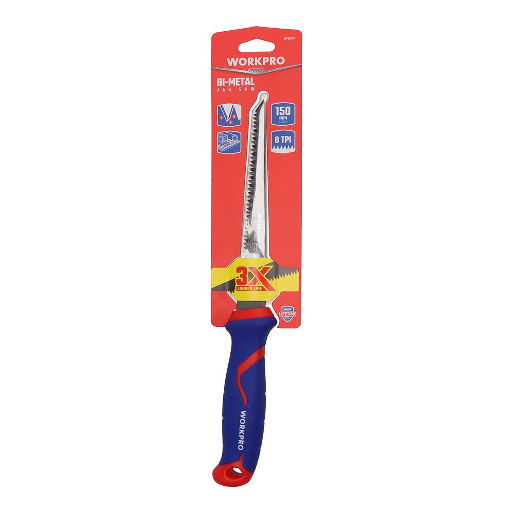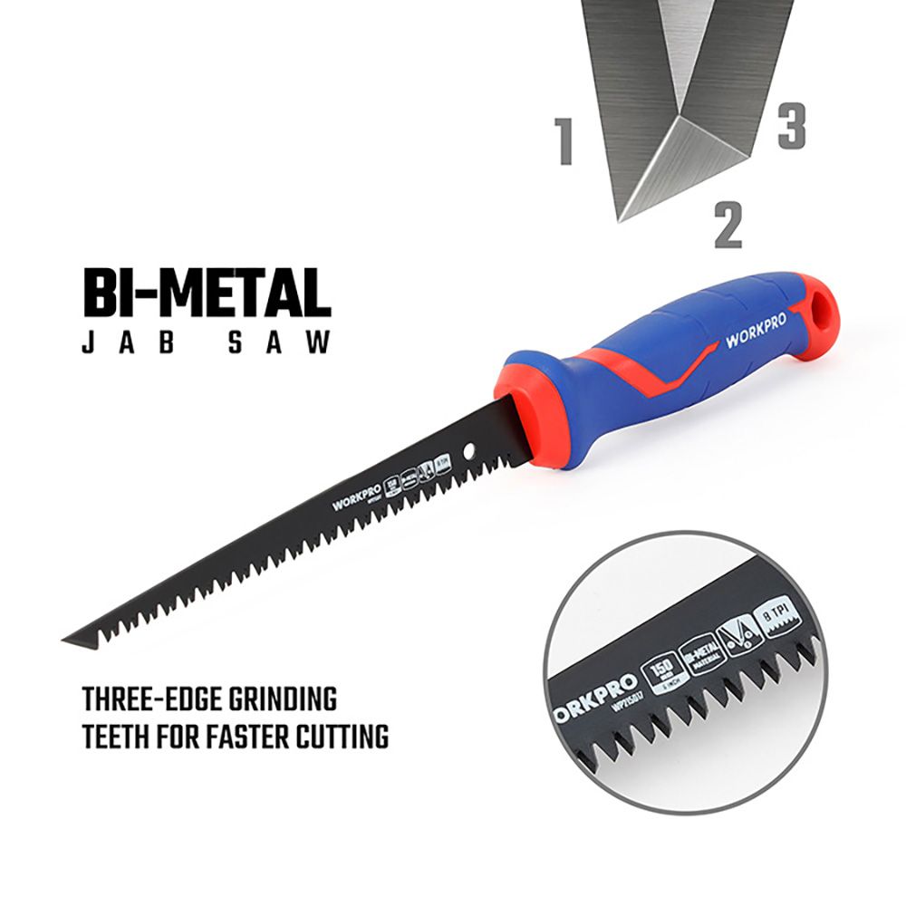 SIERRA MAMPOSTERÍA BIMETAL 150 mm MANGO DISEÑADO ERGONÓMICAMENT, HOJA DE ACERO 65 Mn, CON LA PUNTA AFILADA PUEDE PERFORAR AGUJEROS RAPIDAMENTE, ADECUADA PARA CORTAR RAPIDAMENTE MADERA, BAMBÚ, PLACAS DE YESO Y OTROS MATERIALES