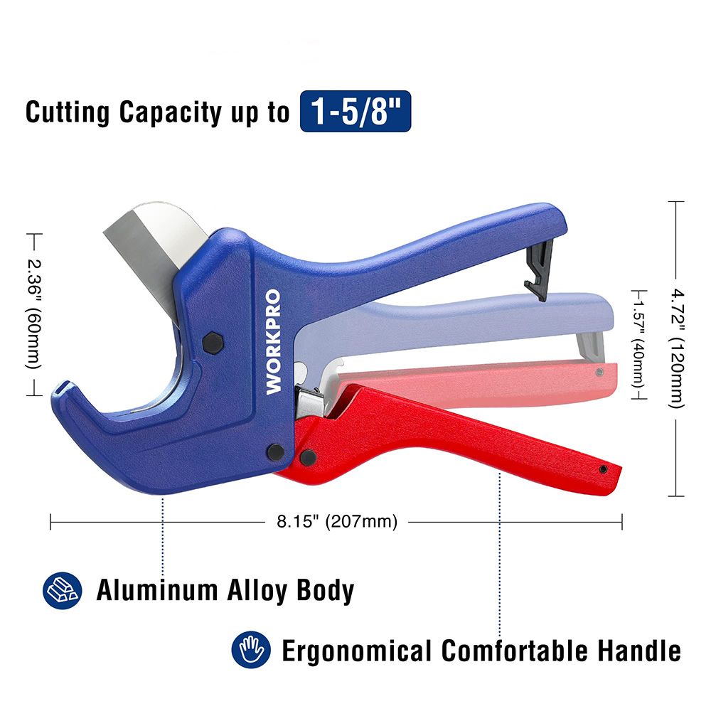TIJERA CORTATUBOS DE LIBERACIÓN RÁPIDA DE 60 mm . DE ALEACIÓN DE ALUMINIO. CUENTA CON ACCIÓN DE TRINQUETE PARA UN CORTE RÁPIDO Y FÁCIL. HOJA DE ACERO TRATADA TÉRMICAMENTE, REEMPLAZABLE. CAPACIDAD DE CORTE: DIÁMETRO EXTERIOR 60,5 mm