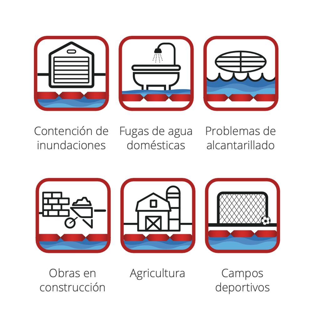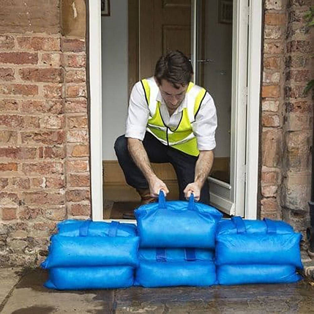 SACO/BARRERA DE EMERGENCIA PARA LA FORMACIÓN DE BARRERA ANTI-INUNDACIONES DESTINADA A LA ABSORCIÓN Y A LA REDIRECCIÓN DEL AGUA. RELLENOS CON UN POLÍMERO SÚPER ABSORBENTE INOCUO - EN SECO SON LIGEROS (0,25 KG), FABRICADO CON MATERIALES 100% RESPETUOSOS CON EL MEDIO AMBIENTE - COLOR AZUL, 60 X 48 CM