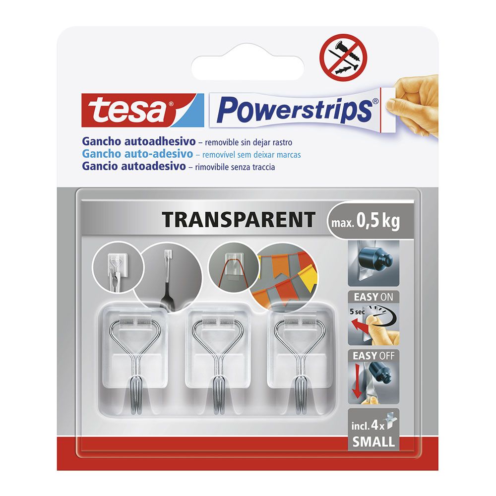 GANCHO AUTOADHESIVO POWERSTRIPS S, TRANSPARENTE