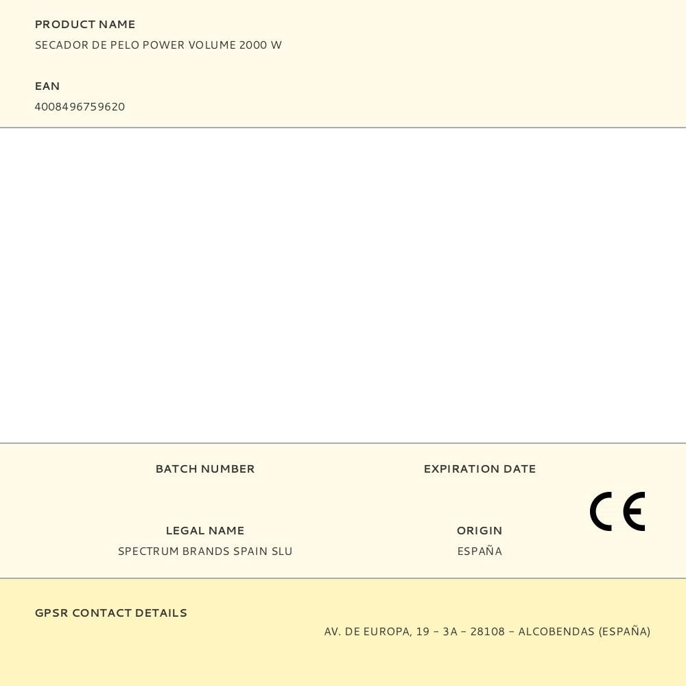 SECADOR DE PELO POWER VOLUME 2000 W