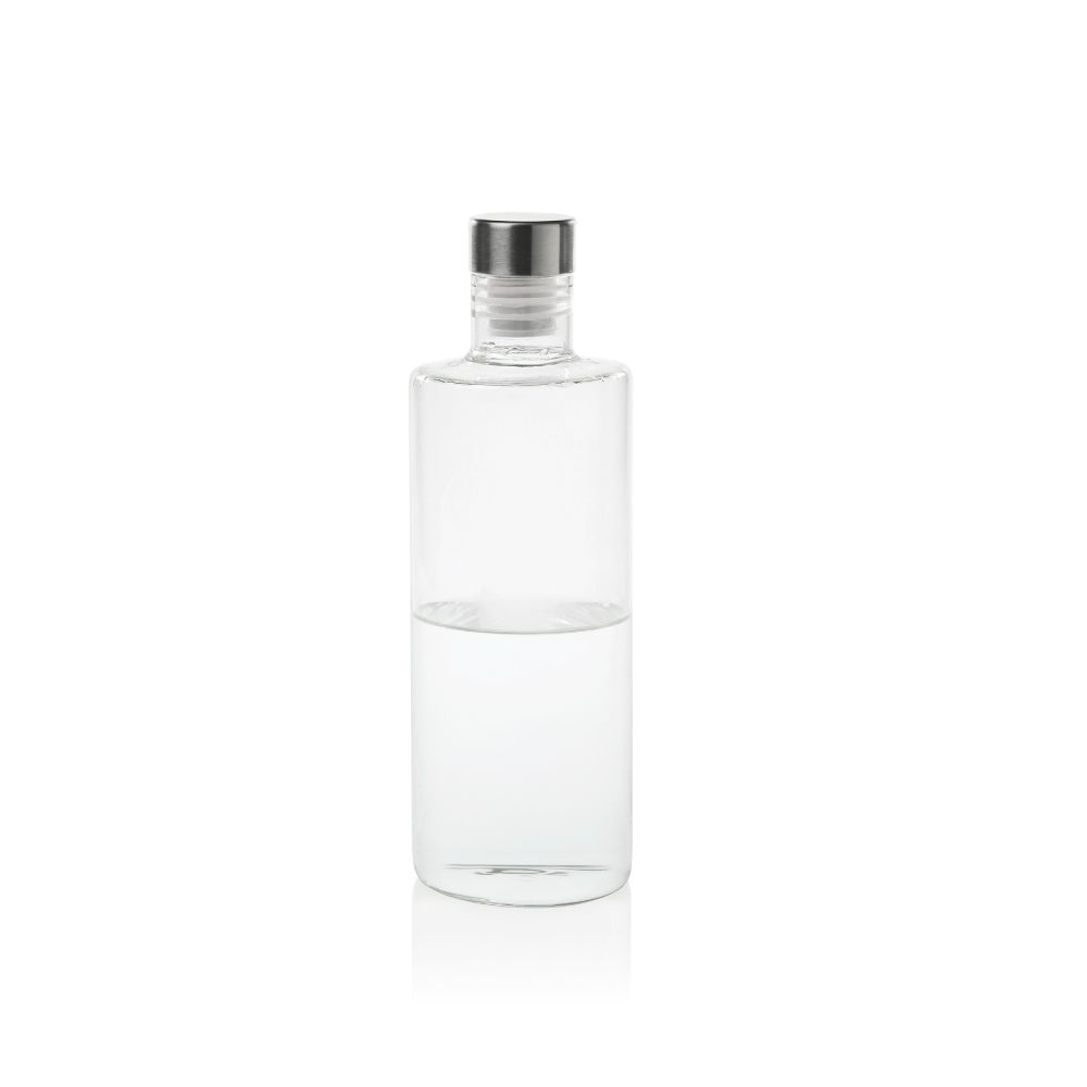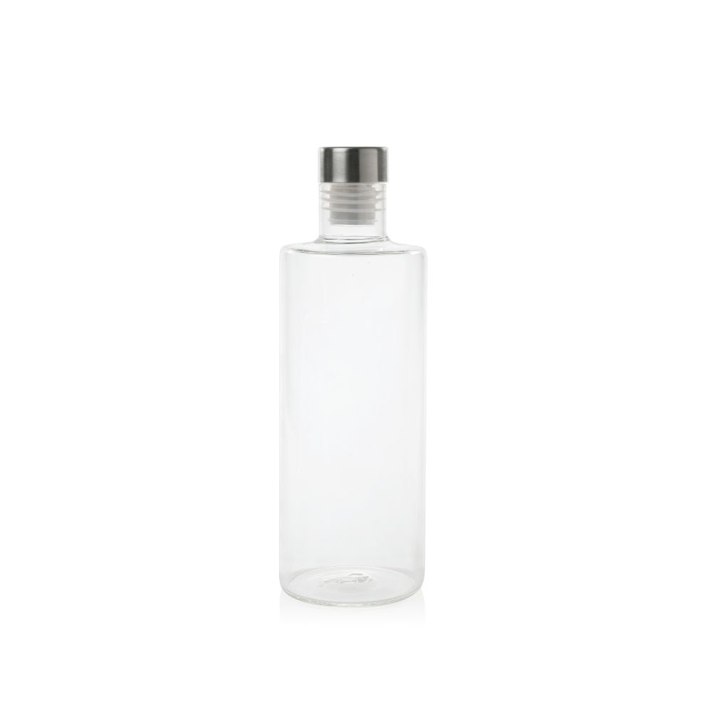 BOTELLA DE AGUA DE CRISTAL TRANSPARENTE CON TAPÓN DE ACERO INOXIDABLE CON ROSCA ANTIGOTEO Ø8 x 29 cm 1 L
