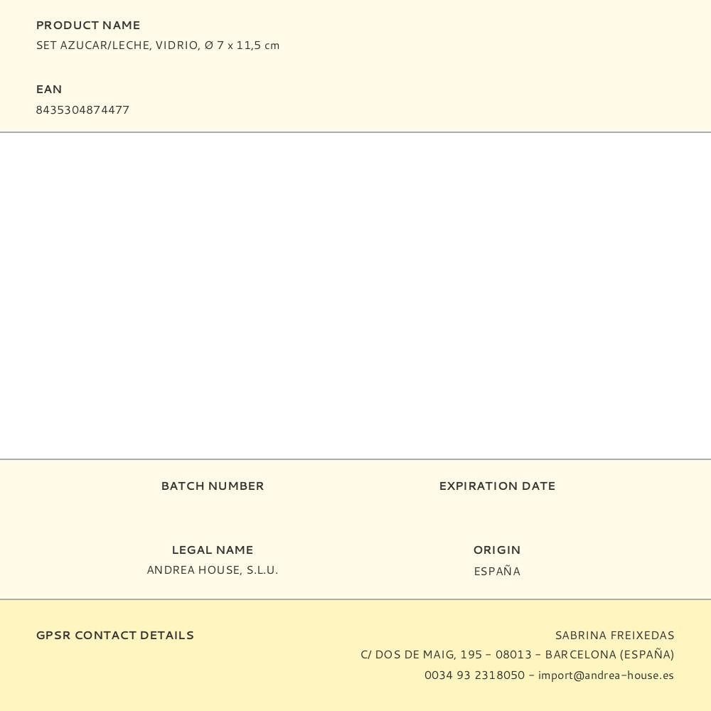 SET DE AZUCARERO Y LECHERA DE CRISTAL CAPACIDAD DE 200 ml, LECHERA MEDIDA: Ø7 x 11,5 cm Y AZUCARERO MEDIDA Ø7x 10.5 cm CON CUCHARA DE ACERO INOXIDABLE