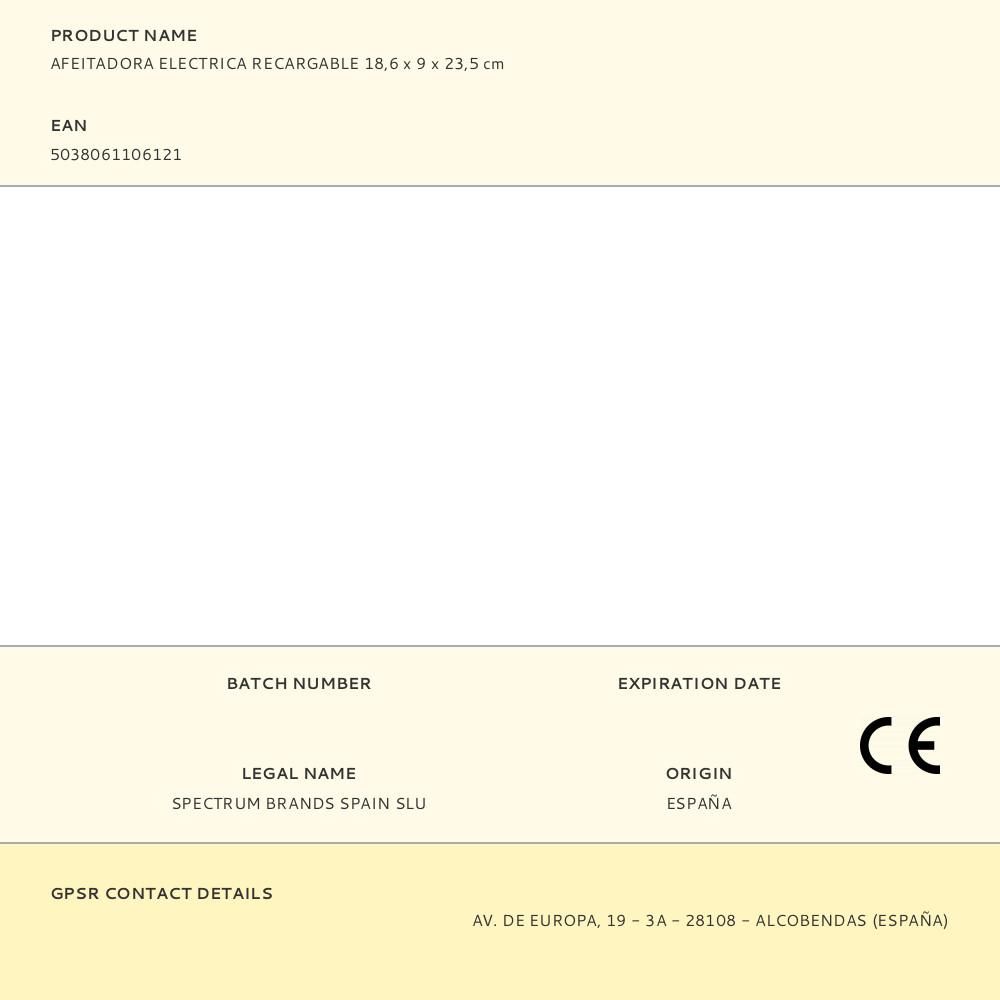 AFEITADORA ELÉCTRICA RECARGABLE 18,6 x 9 x 23,5 cm