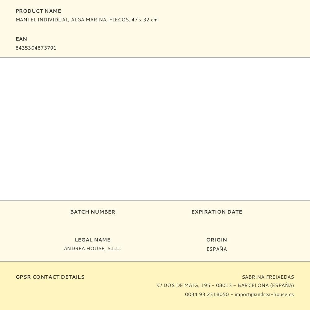 MANTEL INDIVIDUAL, ALGA MARINA, FLECOS, 47 x 32 cm