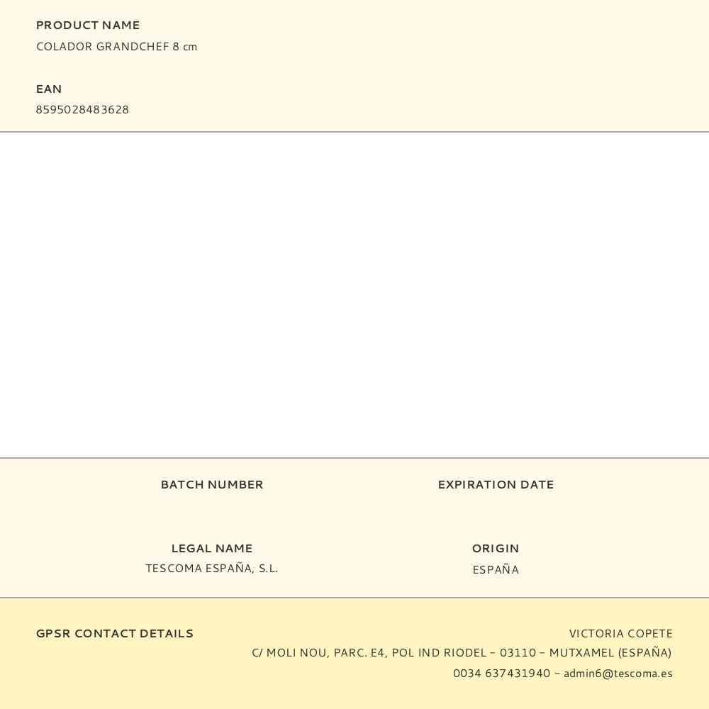 COLADOR GRANDCHEF 8 cm . FABRICADO DE ACERO INOXIDABLE. APTO PARA LAVAVAJILLAS
