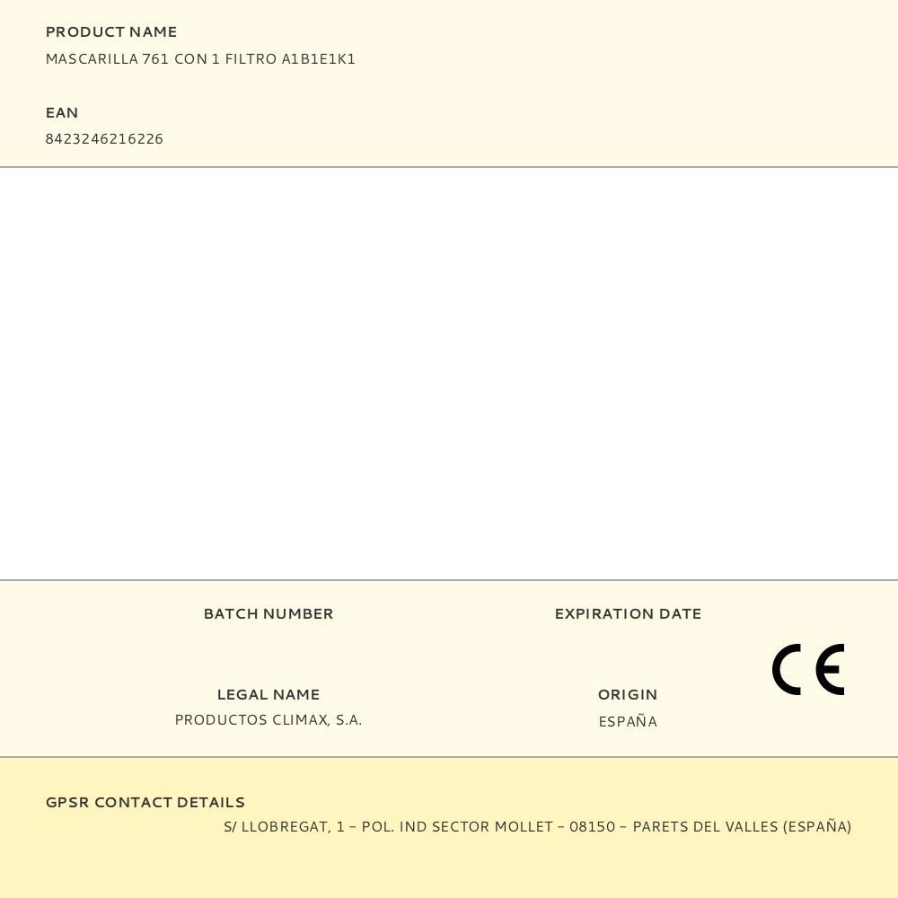 MASCARILLA 761 CON 1 FILTRO A1B1E1K1