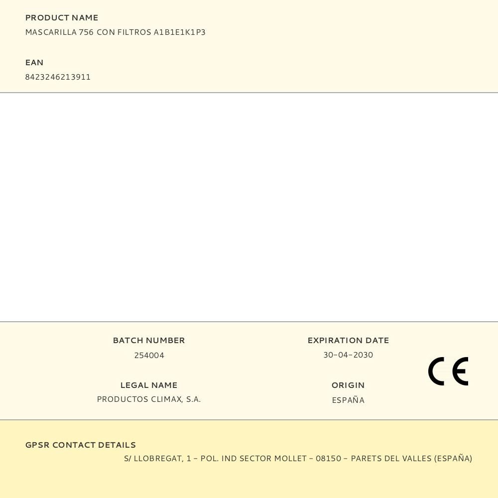 MASCARILLA 756 CON FILTROS A1B1E1K1P3