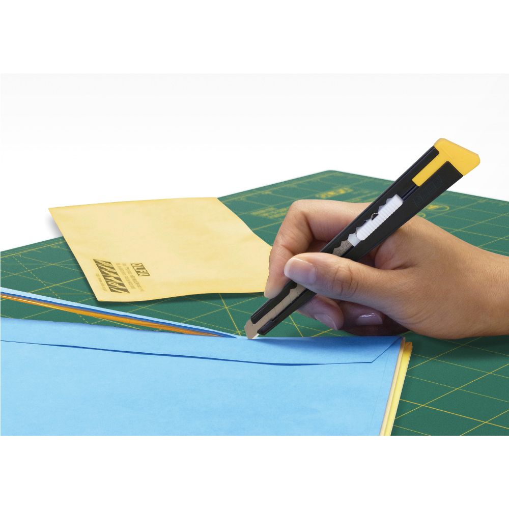 CÚTER 180 BLACK DE 9 mm CON BLOQUEO AUTOMÁTICO Y MANGO METÁLICO. CLIP DE PLÁSTICO PARA BOLSILLOS CON PARTIDOR DE CUCHILLAS. APLICACIONES SUGERIDAS: CORTE EN GENERAL: PAPEL, FILM DE PLÁSTICO, RETRACTILADO, ETC