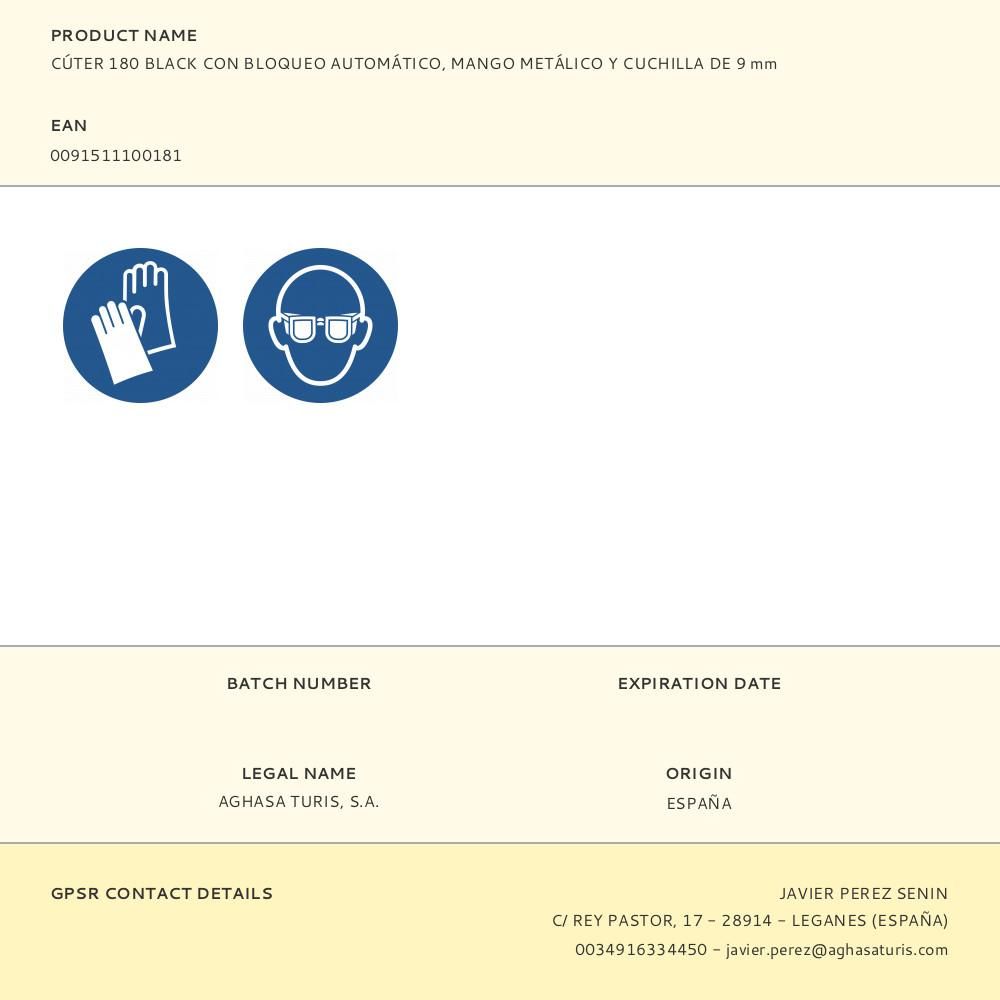 CÚTER 180 BLACK CON BLOQUEO AUTOMÁTICO, MANGO METÁLICO Y CUCHILLA DE 9 mm