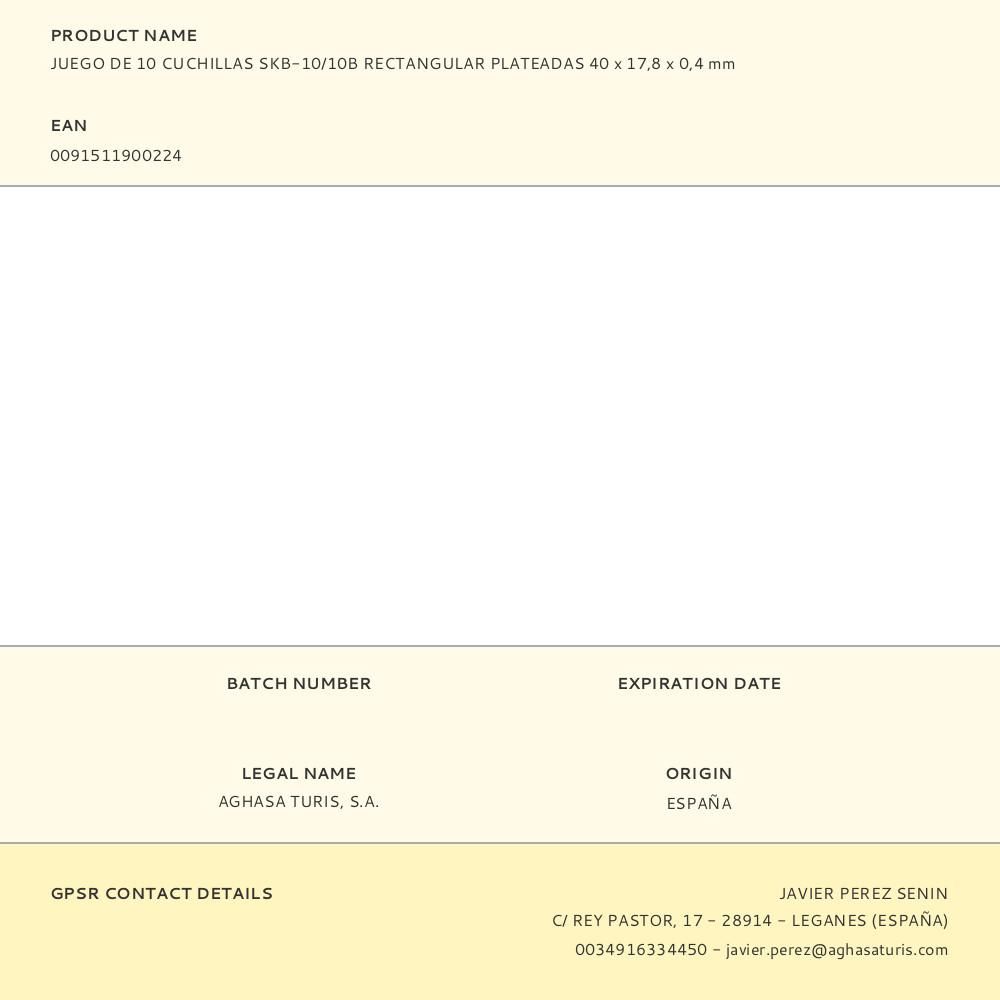JUEGO DE 10 CUCHILLAS SKB-10/10B RECTANGULAR PLATEADAS 40 x 17,8 x 0,4 mm