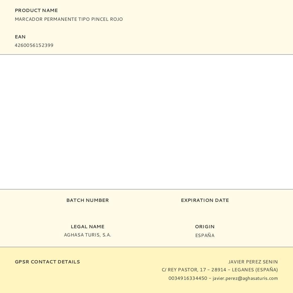 MARCADOR PERMANENTE TIPO PINCEL ROJO, PARA MARCAJE PERMANENTE EN CASI TODO TIPO DE SUPERFICIES SECAS. TINTA PERMANENTE A BASE DE ALCOHOL. SECADO RÁPIDO. RESISTENTE AL AGUA. INDELEBLE. LIBRE DE TOLUENO Y XILENO