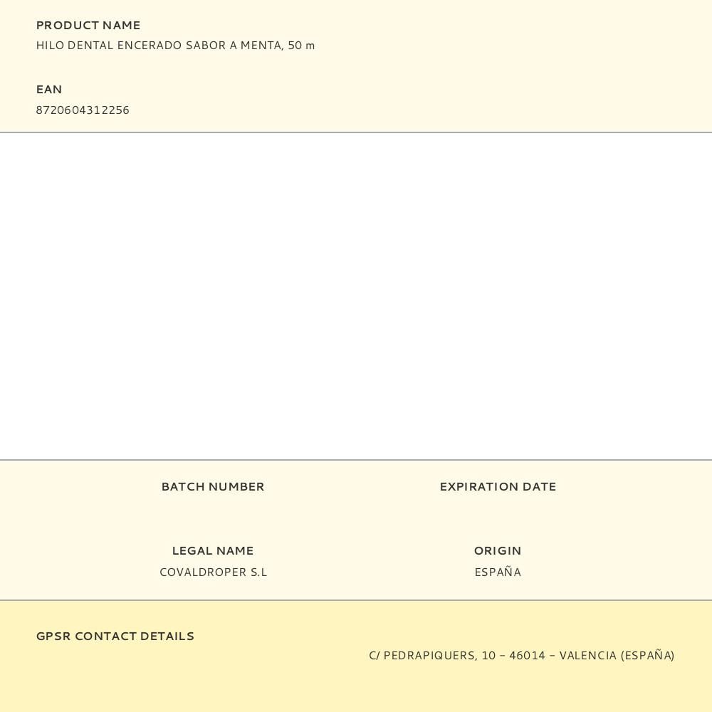 HILO DENTAL ENCERADO SABOR A MENTA, 50 m