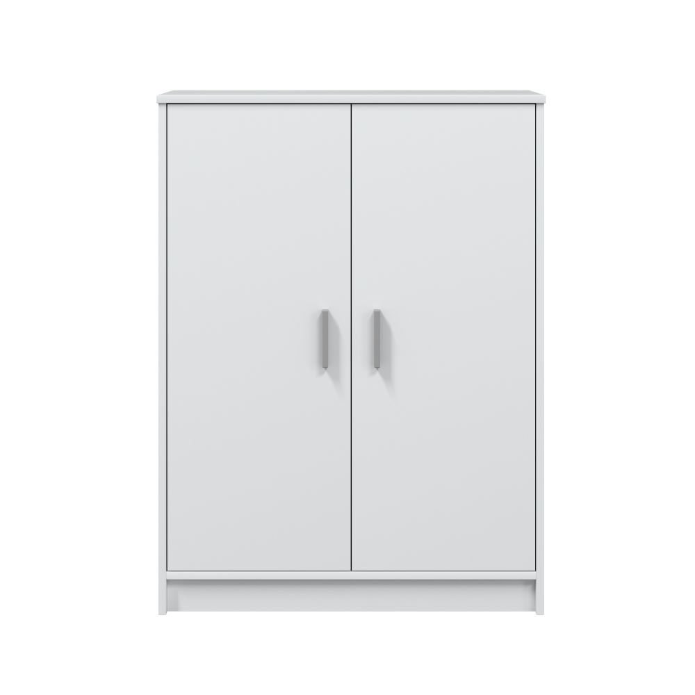 MUEBLE DE 2 PUERTAS Y 6 ESTANTES. COLOR BLANCO. MATERIAL: MELAMINA. CONTIENE: BISAGRAS METÁLICAS, SOPORTE ESTANTES METÁLICOS, TACOS ABS QUITARRUIDOS Y ANTIRAYAS Y TIRADORES ABS PINTADOS EN GRIS ALUMINIO. MEDIDAS: 75 x 36 x 101 cm. SERVICIO DE POSTVENTA GRATUITO: postventa@fores-group.com