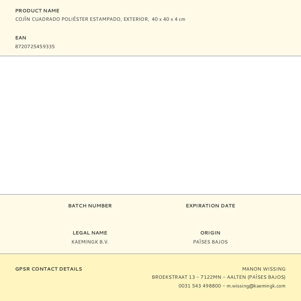 COJÍN CUADRADO POLIÉSTER ESTAMPADO, EXTERIOR, 40 x 40 x 4 cm